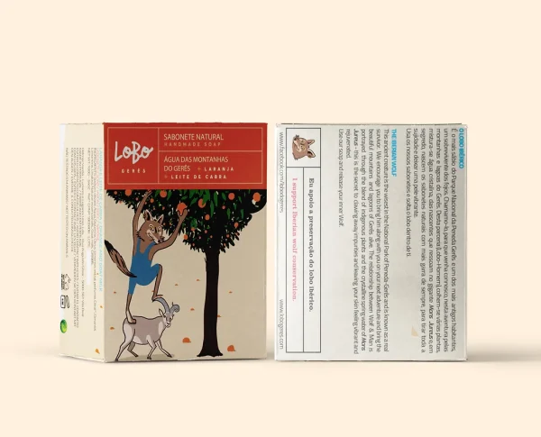 LoBo do Gerês: Sabonete Natural e Artesanal Laranja e Leite de Cabra. Este sabonete faz parte da coleção de 7 sabonetes naturais com plantas que habitam o Parque Nacional da Peneda – Gerês.